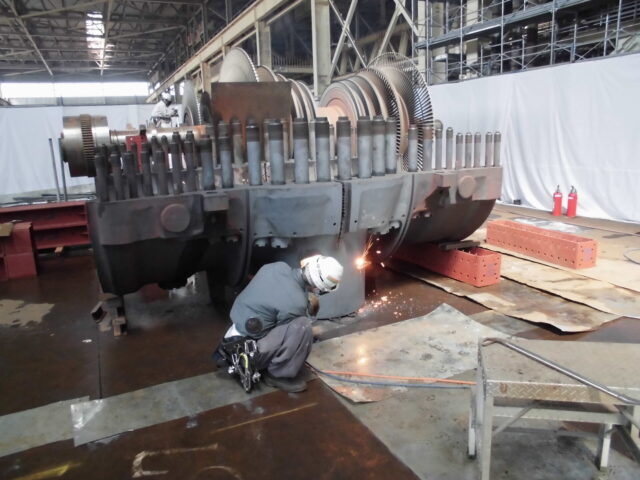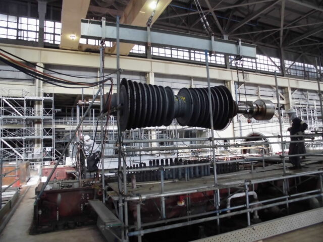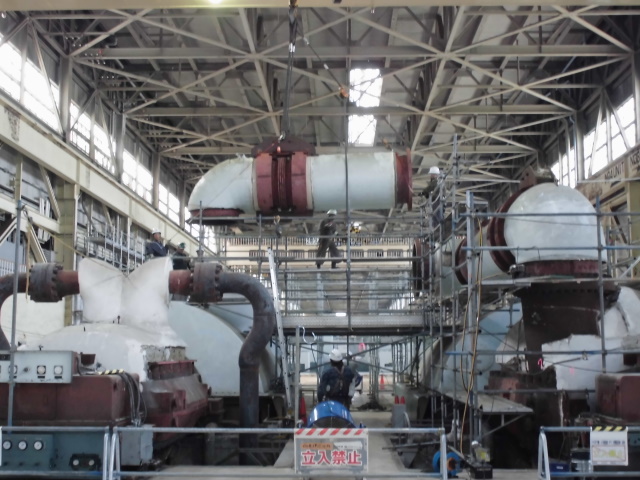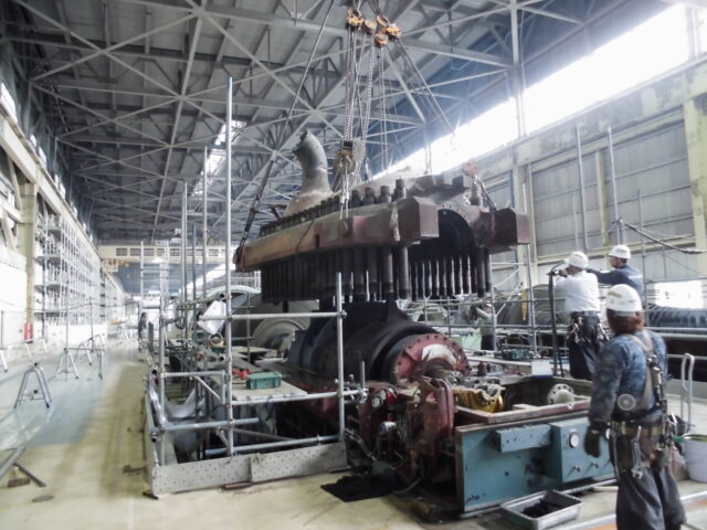 (3)ケーシング上半撤去(低圧、中圧、高圧)、2次切断
