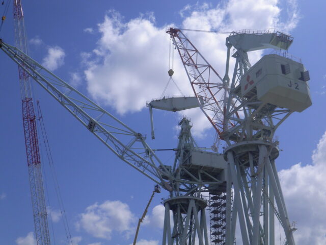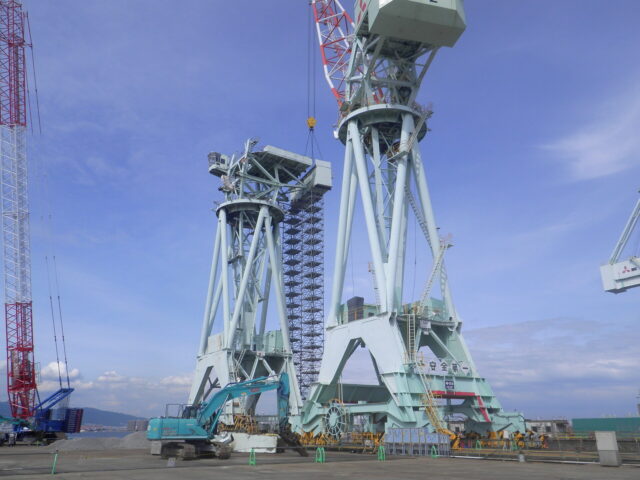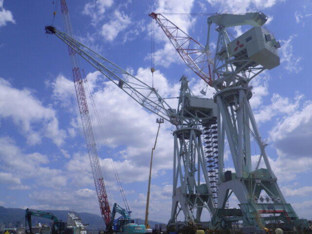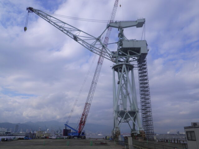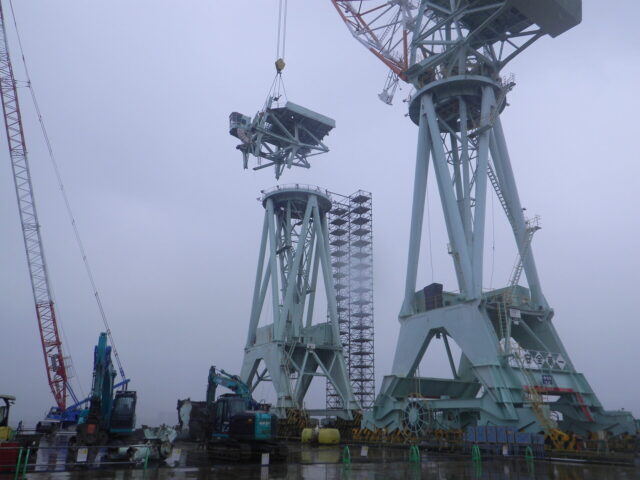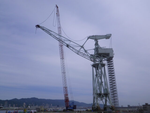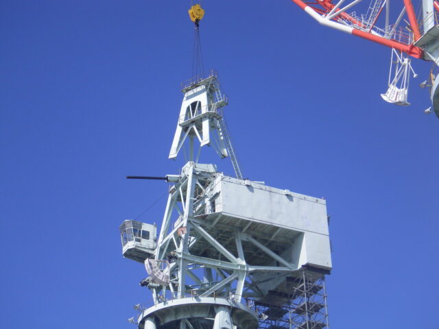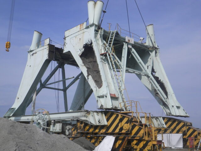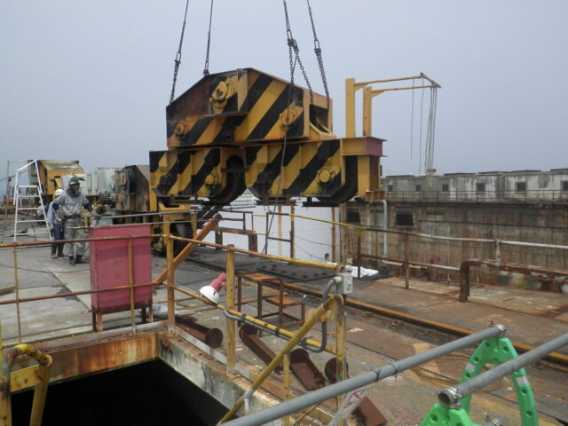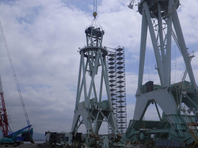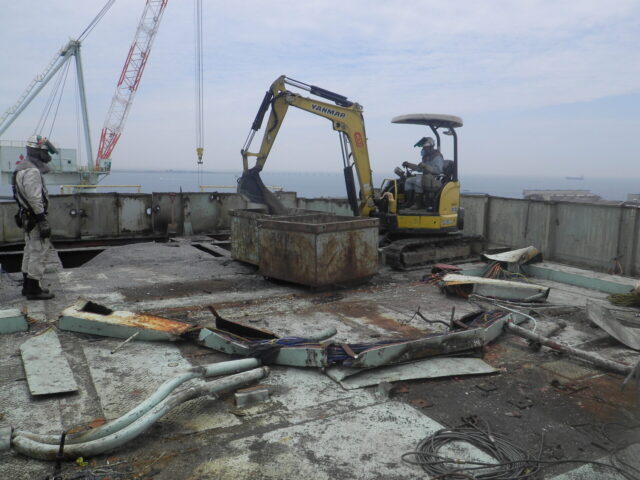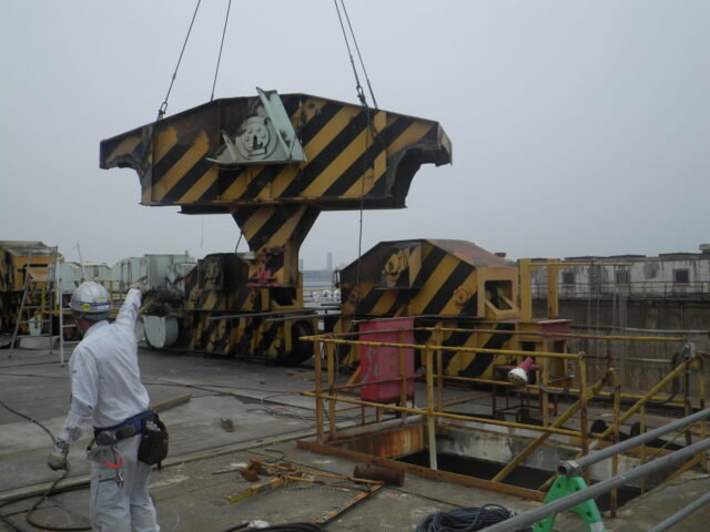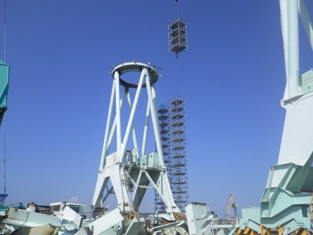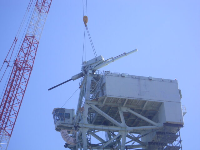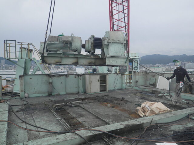 (5)機械室後部(バラスト部)撤去、機械室残部+センターフレーム上部撤去、センターフレーム残部撤去