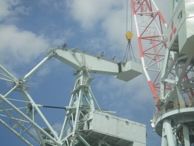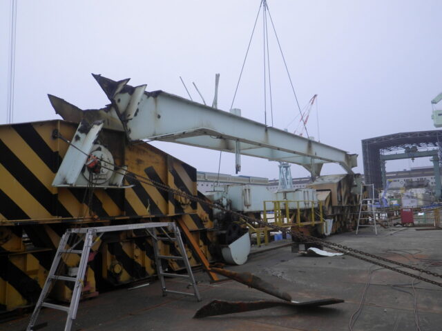 (2)スイングレバーウェイト撤去、スイングレバー及びロッド撤去、ジブ撤去