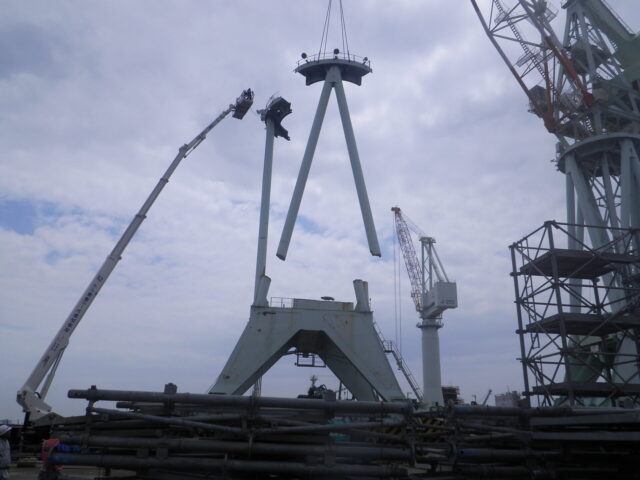 (3)Aフレーム上部撤去、引込ロッド撤去、Aフレーム下部撤去
