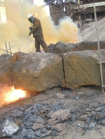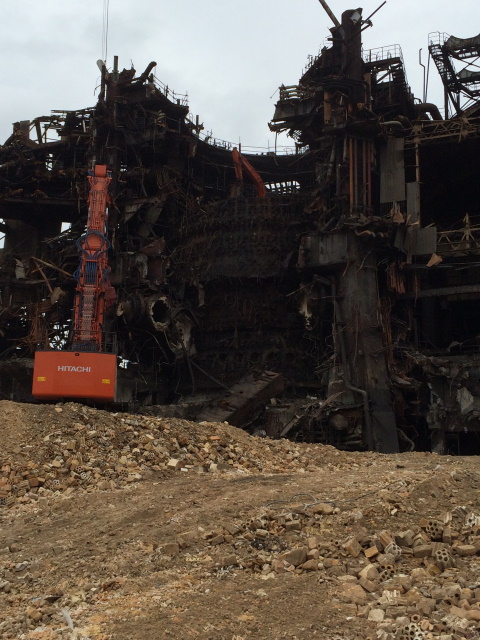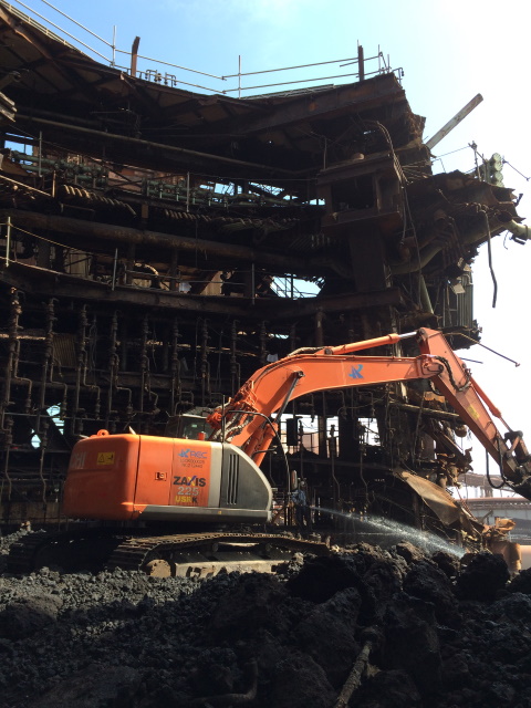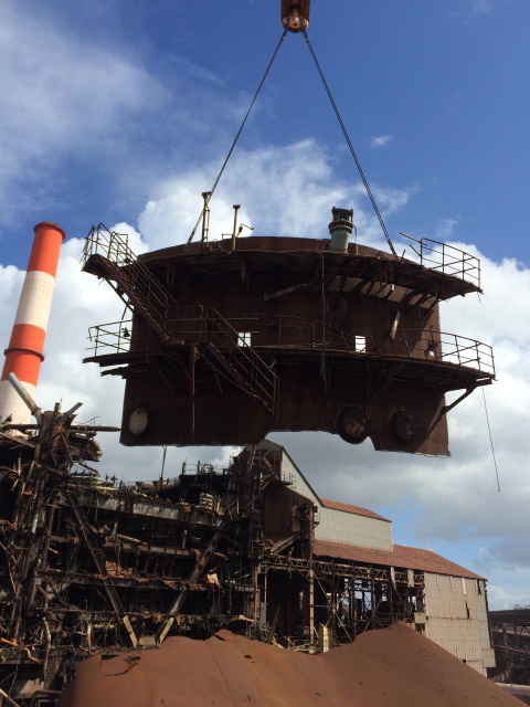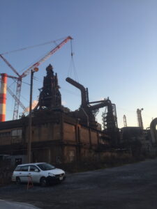 (7)炉内内容物掻き出し、サラマンダー解体、環状管・集塵ダクト撤去、鋳床・建屋解体、天井クレーン解体