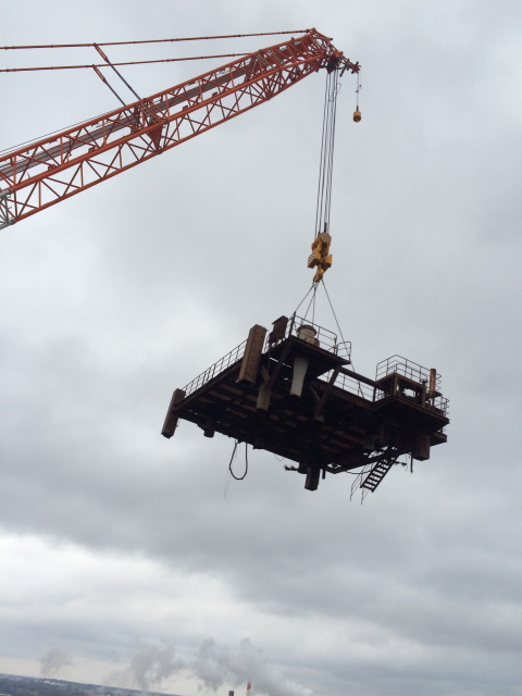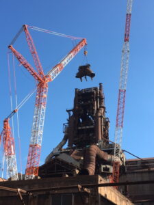 (3)炉頂設備撤去(サイレンサー、ブリーダー架構、ベル開閉用ホイスト架構)