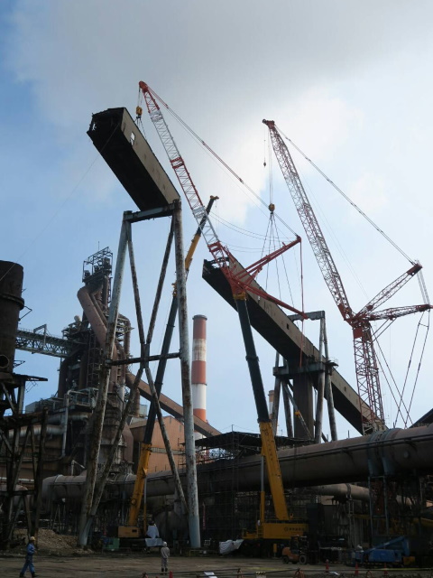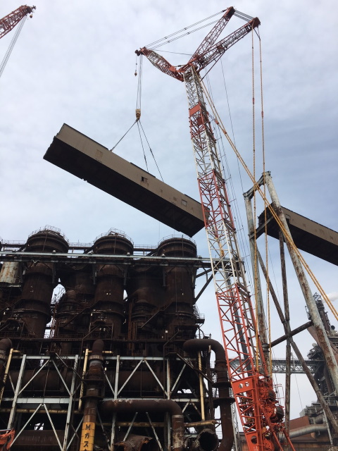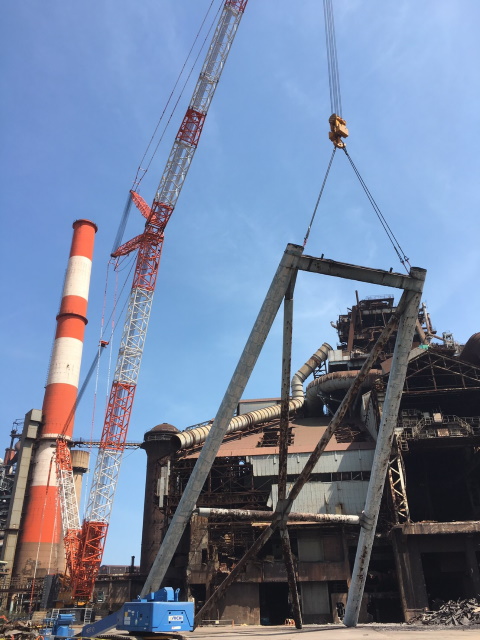 装入コンベア解体(装入BC) 投稿日: 2022年10月7日2022年10月12日 投稿者: minapro 装入コンベア解体 (1)事前作業(区画・仮置場の設定、敷鉄板、腐食部補強、切断線マーキング、クレーン組立) (2)玉掛(シャックル穴あけ、吊具仕込【ワイヤー、チェーンブロック、吊りチェーン等】) (3)コンベア・ギャラリー撤去(ブロック毎) (4)コンベア支柱撤去 関連