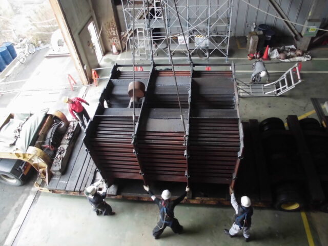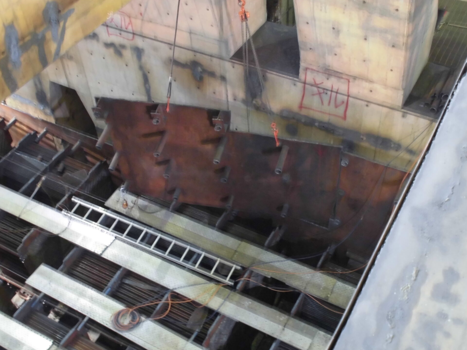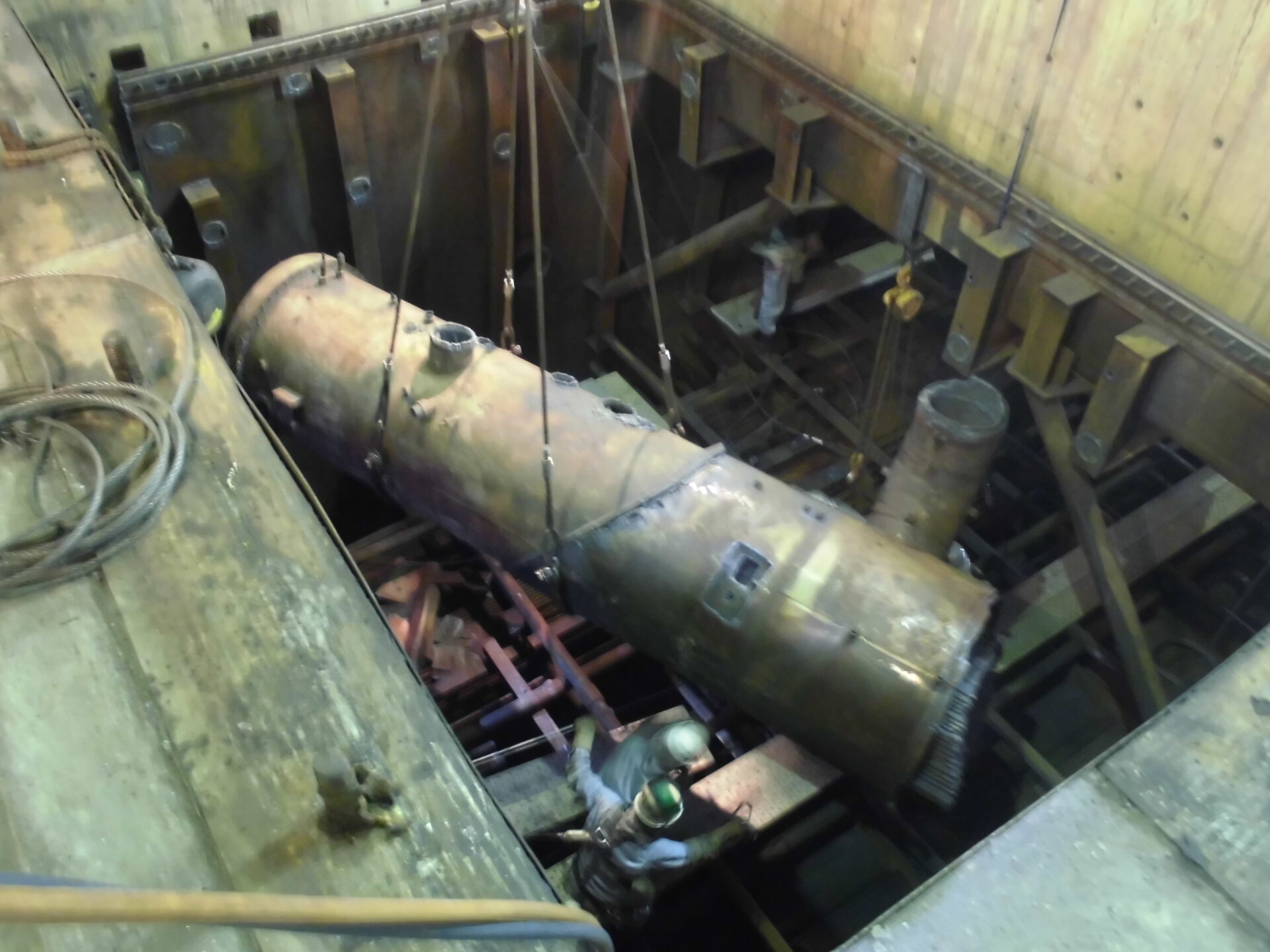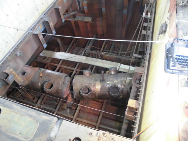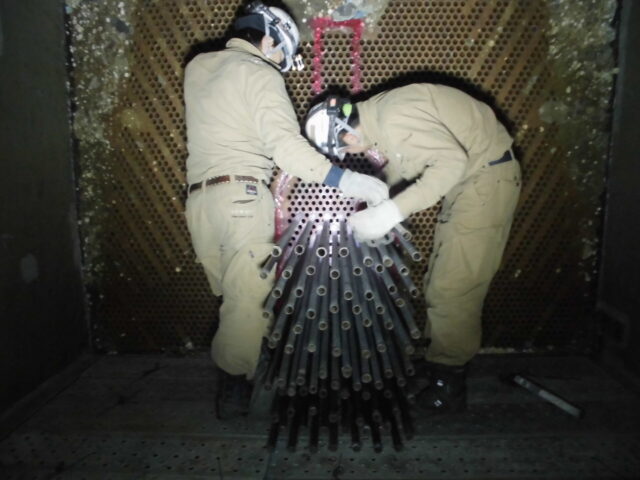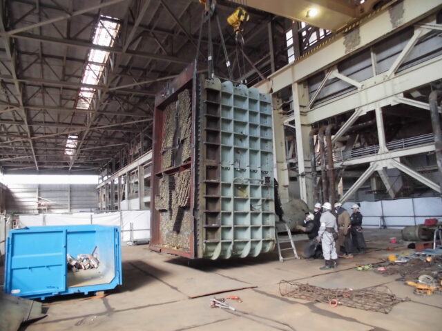 復水器解体 投稿日: 2022年10月12日2022年10月12日 投稿者: minapro 復水器解体 (1)冷却細管抜き取り(チタン)、低圧給水加熱器分割吊り撤去 (2)水室カバー撤去、作業足場架設、冷却細管・管巣撤去 (3)水室撤去、壁撤去、搬出 関連